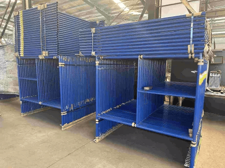 • Complete scaffolding systems including standards, ledgers, transoms, base plates, diagonal braces, toe boards, and working platforms—everything needed for safe elevated access